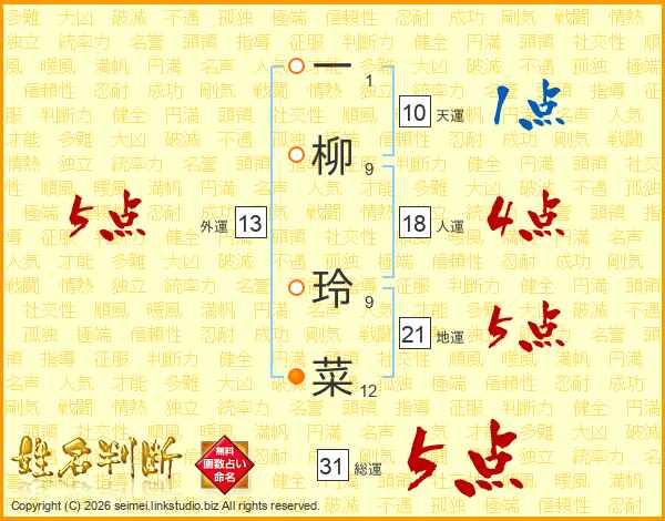 一柳玲菜さんの総運は31画の5点!
