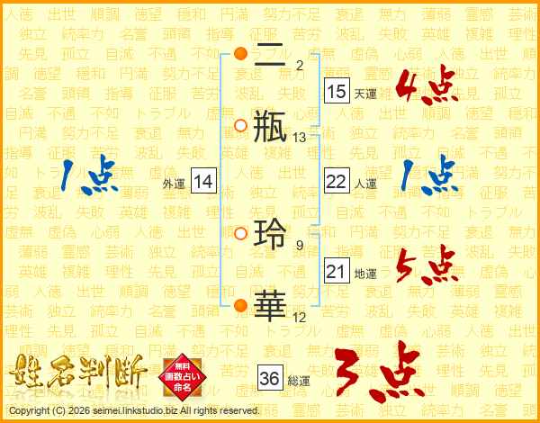 二瓶玲華さんの総運は36画の3点!
