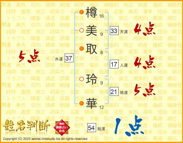 樽美取玲華さんの人運は17画の4点!