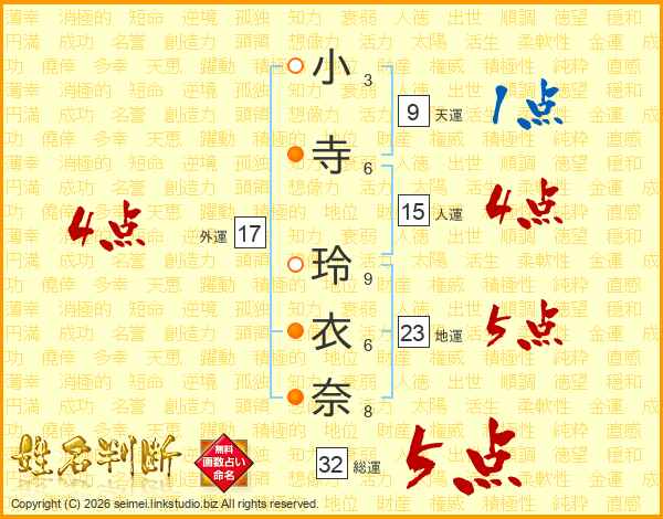 小寺玲衣奈さんの総運は32画の5点!