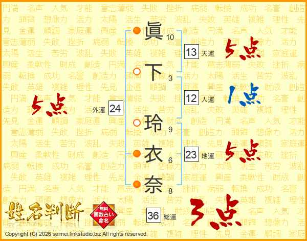 眞下玲衣奈さんの天運は13画の5点!