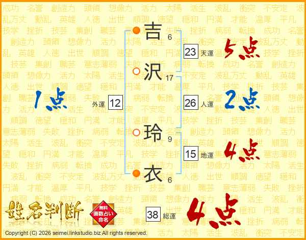 吉沢玲衣さんの天運は23画の5点!