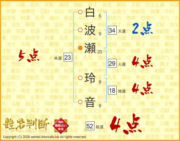 白波瀬玲音さんの総運は52画の4点!