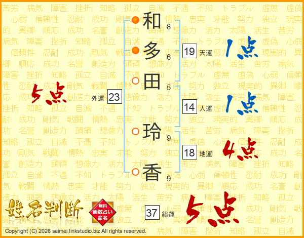 和(8画)多(6画)田(5画) 玲(9画)香(9画)