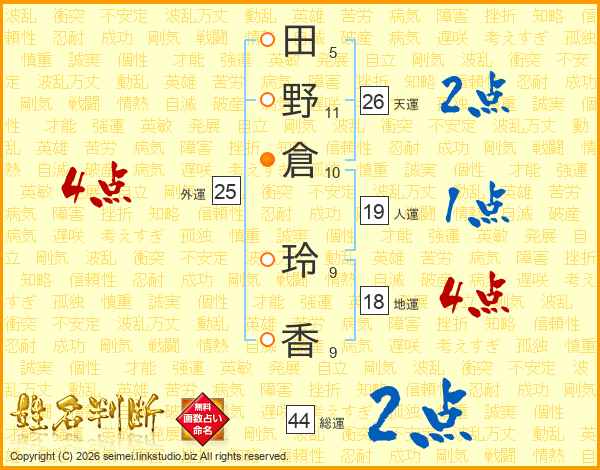 田野倉玲香さんの天運は26画の2点!