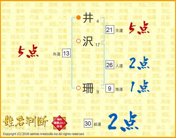 井沢珊さんの人運は26画の2点!