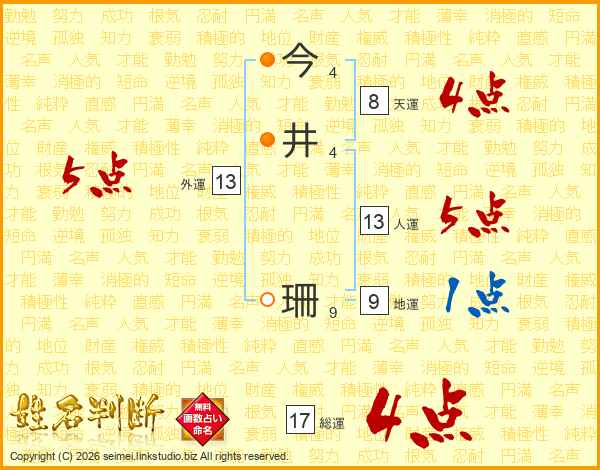今井珊さんの総運は17画の4点!