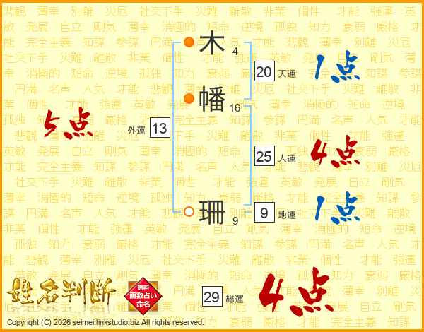 木幡珊さんの総運は29画の4点!