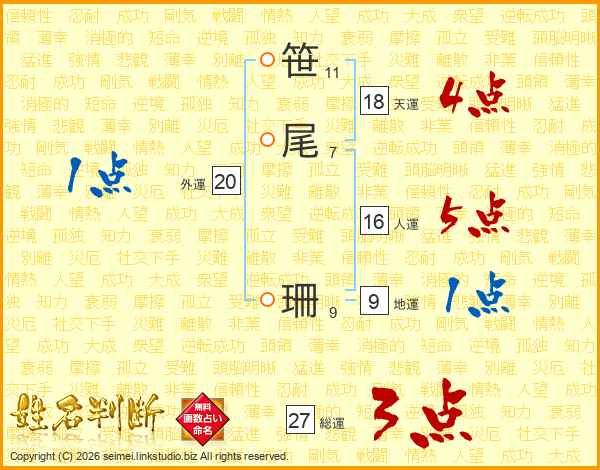 笹尾珊さんの総運は27画の3点!