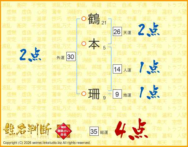 鶴本珊さんの天運は26画の2点!