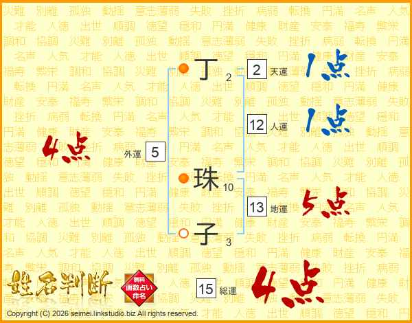 丁珠子さんの総運は15画の4点!