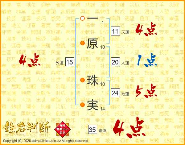 一原珠実さんの総運は35画の4点!