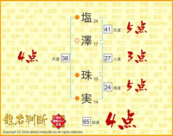 塩(24画)澤(17画) 珠(10画)実(14画)