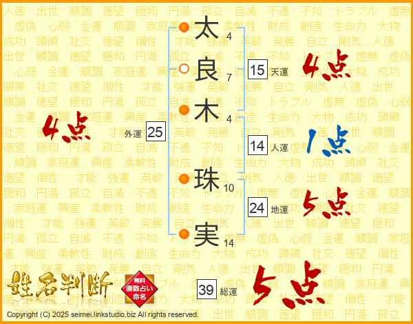 太良木珠実さんの総運は39画の5点!