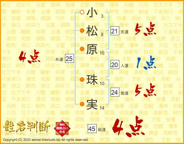 小松原珠実さんの総運は45画の4点!