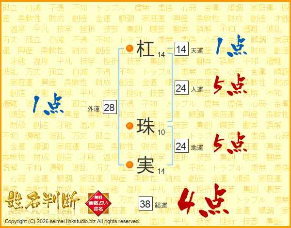 杠珠実さんの天運は14画の1点!