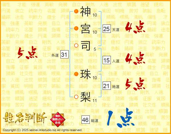 神宮司珠梨さんの外運は31画の5点!