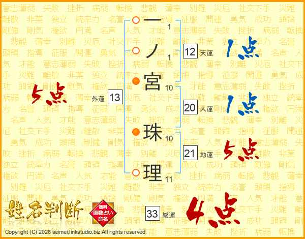 一ノ宮珠理さんの総運は33画の4点!