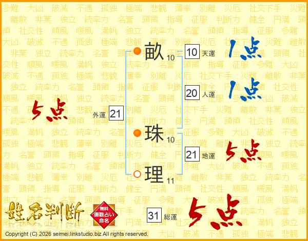 畝珠理さんの外運は21画の5点!