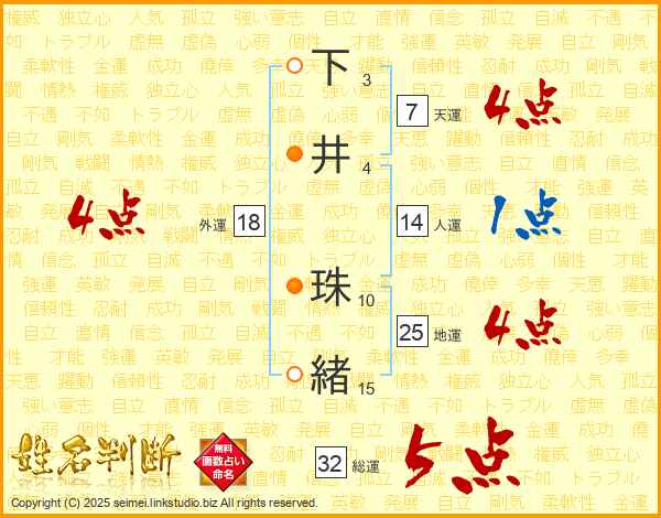 下井珠緒さんの地運は25画の4点!