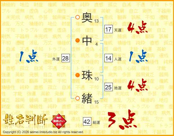奥中珠緒さんの地運は25画の4点!
