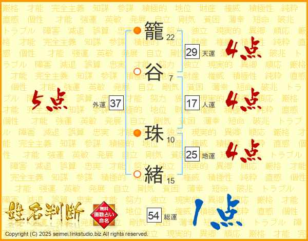 籠谷珠緒さんの外運は37画の5点!