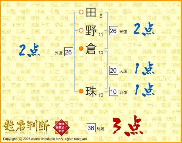 田野倉珠さんの天運は26画の2点!