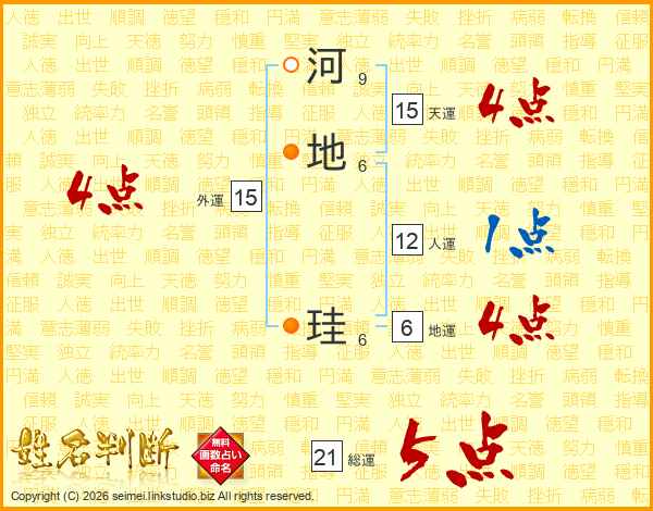 河地珪さんの総運は21画の5点!