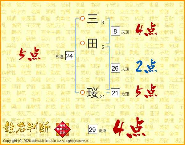 三田珱さんの総運は29画の4点!