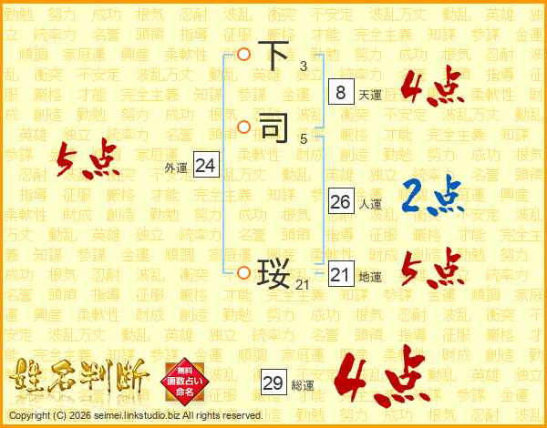 下司珱さんの総運は29画の4点