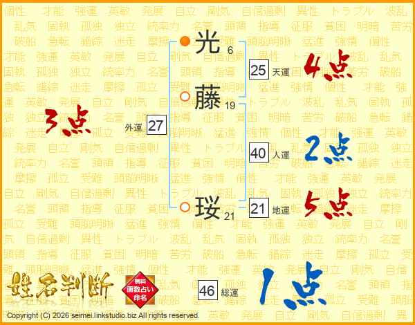光藤珱さんの総運は46画の1点!