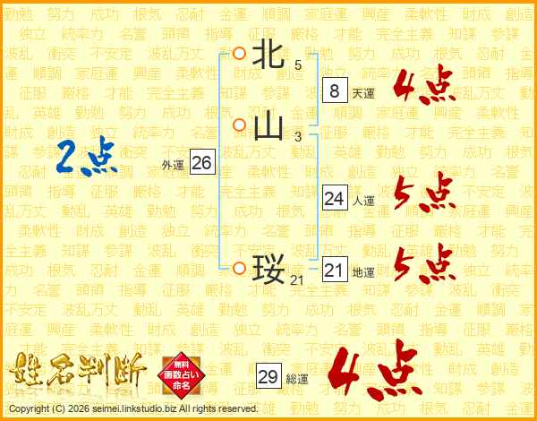 北山珱さんの総運は29画の4点!