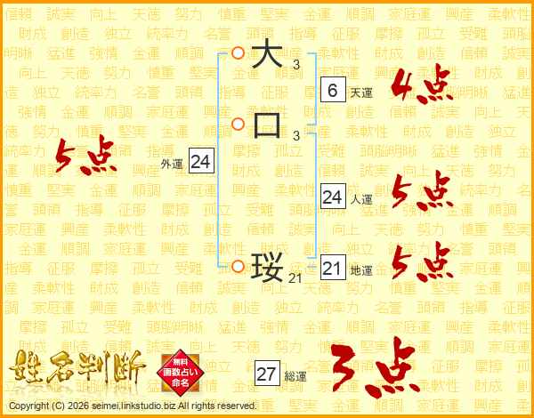 大口珱さんの総運は27画の3点