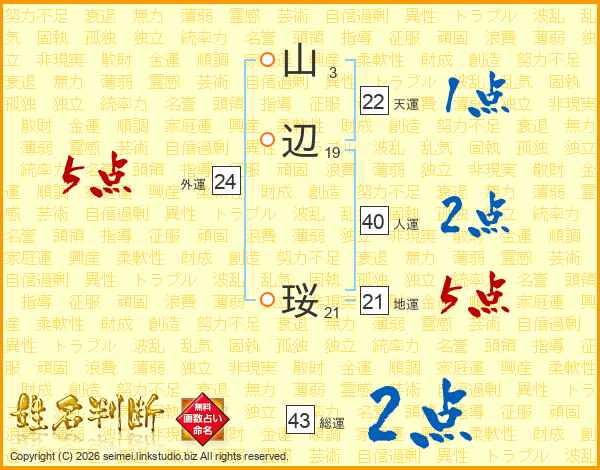 山辺珱さんの総運は43画の2点!