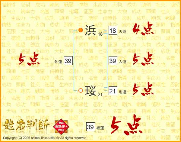 浜珱さんの外運は39画の5点!