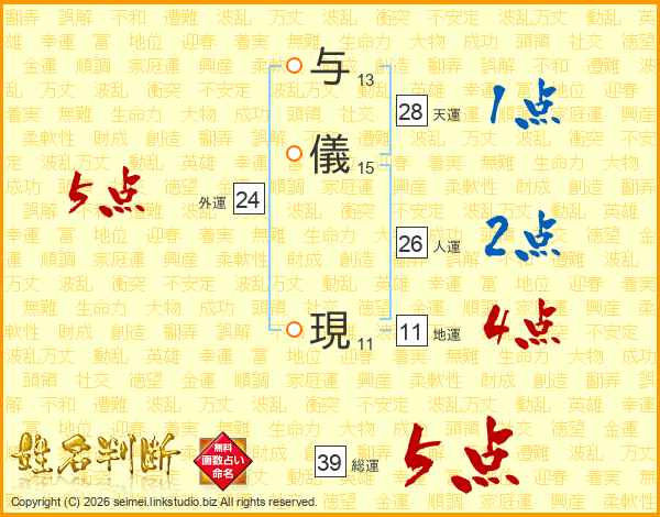 与儀現さんの人運は26画の2点!