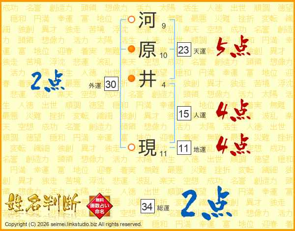 河原井現さんの天運は23画の5点!