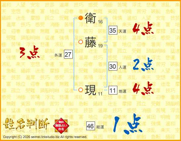 衛(16画)藤(19画) 現(11画)