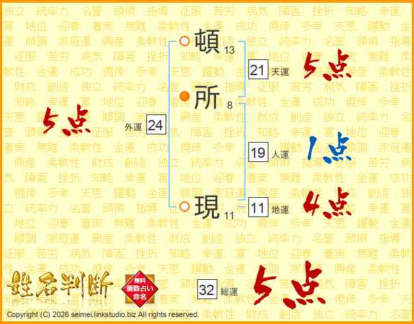 頓所現さんの総運は32画の5点!