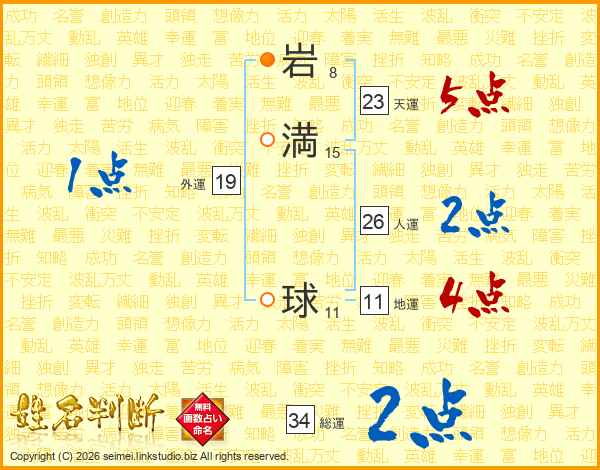 岩(8画)満(15画) 球(11画)