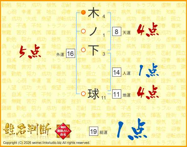 木ノ下球さんの総運は19画の1点!