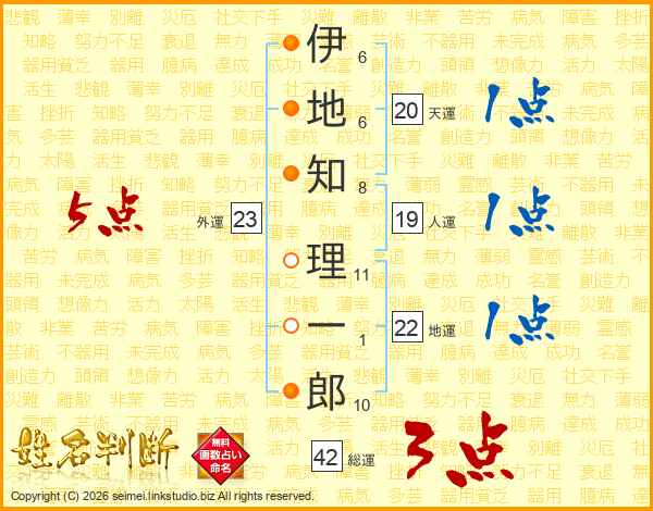 伊地知理一郎さんの総運は42画の3点!