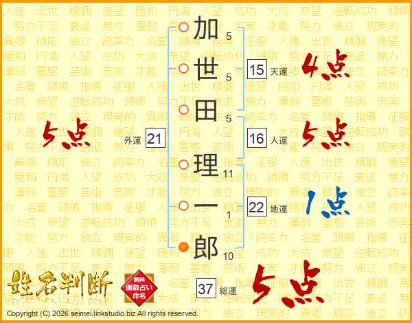 加世田理一郎さんの総運は37画の5点!