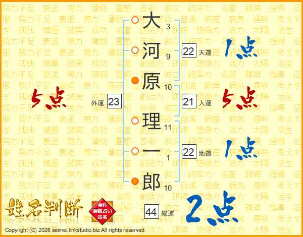 大河原理一郎さんの総運は44画の2点!
