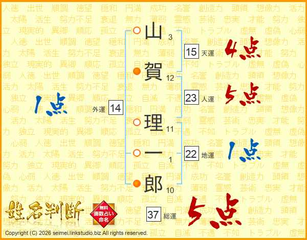山賀理一郎さんの人運は23画の5点!