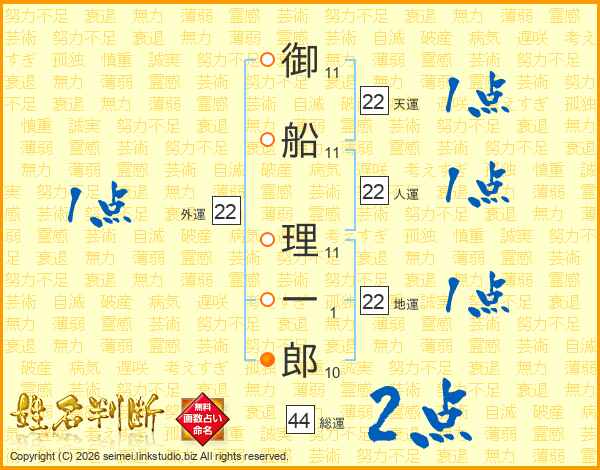 御船理一郎さんの総運は44画の2点!