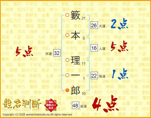 籔本理一郎さんの天運は26画の2点!