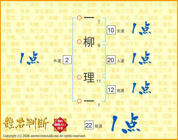 一柳理一さんの総運は22画の1点!