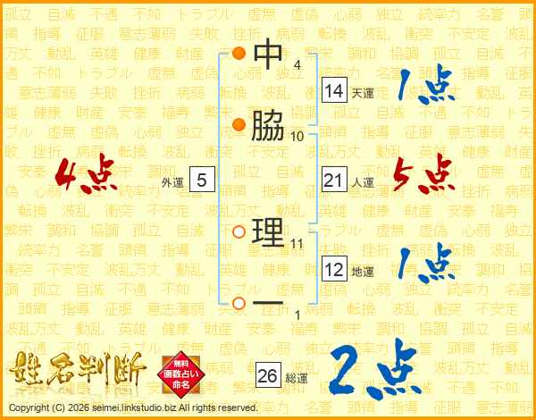 中脇理一さんの天運は14画の1点!