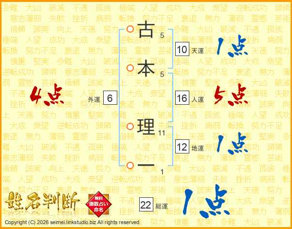 古本理一さんの人運は16画の5点!